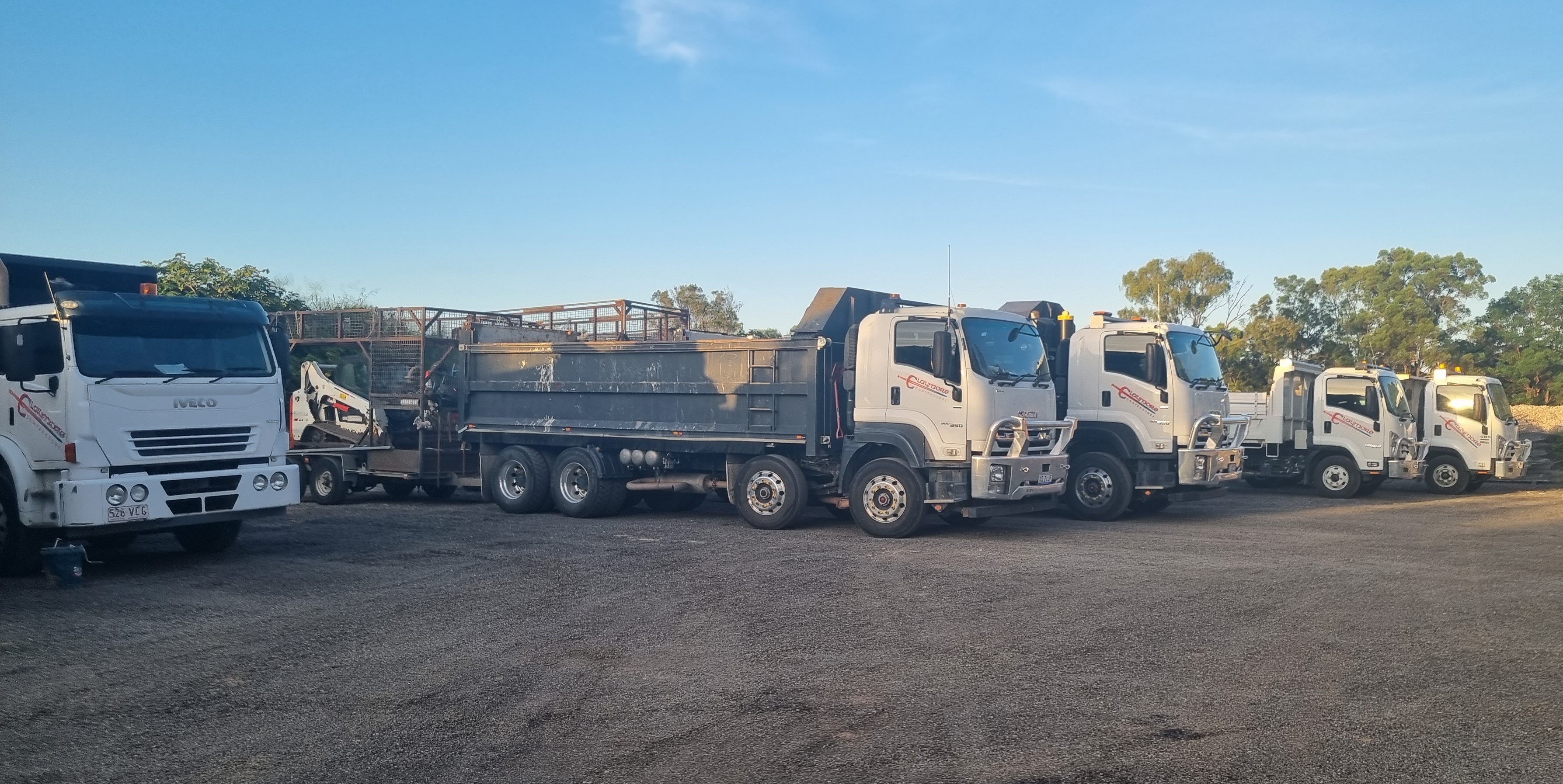that can carry up to 18Tonne of materials, smaller trucks for smaller jobs with restricted access, plus we have skid steers and an